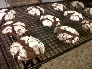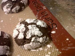 These cookies are pretty easy to make and they have a sweet powdered sugar-coating that gives them a pretty cracked look. The inside is soft and not too sweet, just pure chocolate heaven! OK, OK, OK…. here is the recipe: