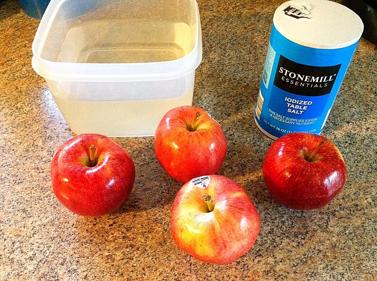 3. Just a heads up, this may make the apples less “healthy.” Many vitamins are water soluble, meaning that they dissolve in water and depending on how long the apples or carrots or whatever soak for, the longer the vitamins will “bleed” out.
