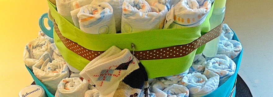 As I mentioned in a previous post my cousin and his wife had a baby shower which I made a cake and cupcakes for (see the post here: Jungle Cake). My sister Shannon and I wanted to do something special for them and make a gift instead of buying a onesie and card. We decided on a jungle themed diaper cake!
