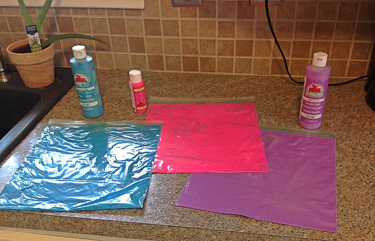 So this morning in an attempt to do something fun but not too messy we made these finger painting bags! They are simple, cheap and fun for the kids. Mine played with them quietly for over an hour 🙂