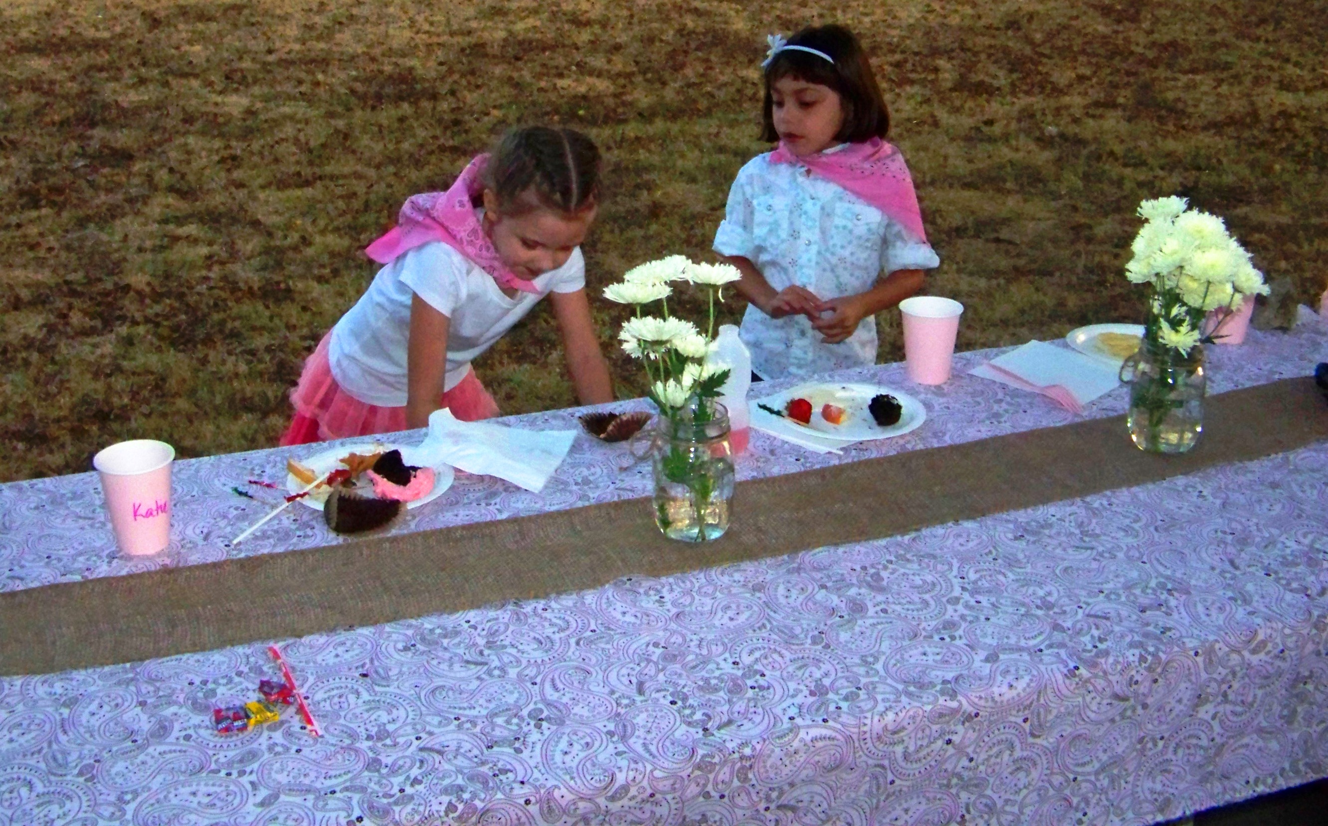 Last Friday night we had Katie’s cowgirl/horse party, it was a hit with my sweet 5-year-old birthday girl! It was pink, brown and white everything since my little girl is not only a horse lover she is by far a girly girl also. I really enjoyed planning and making everything for this party because she was more involved this year since she is getting older and more opinionated. This is her first party inviting more than just close family and a few family friends in our living room. She helped me plan and make food, decor and games. Katie getting to help made her celebration more special to her. I can tell she has great memories of making this party happen, and then enjoying it with her friends and family.