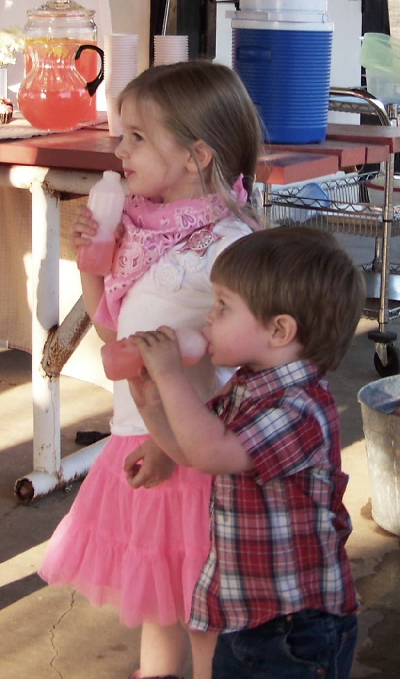 We also borrowed a big galvanized steel tub and filled it with ice, pink strawberry kiwi kool-aid bottles, and rootbeer bottles. We put a sign in it that said watering hole 🙂