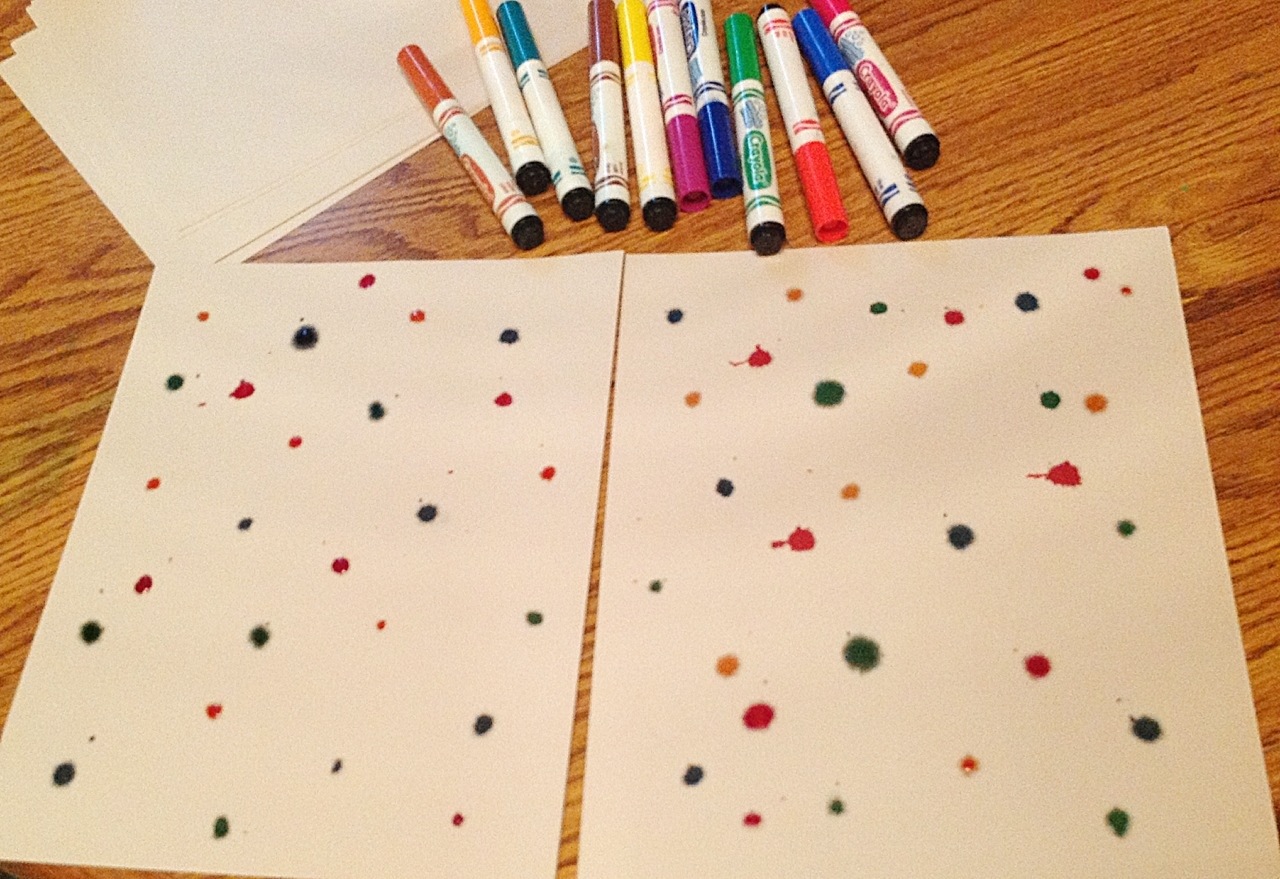 While they did that I was using food coloring to dot two more pieces of card stock.