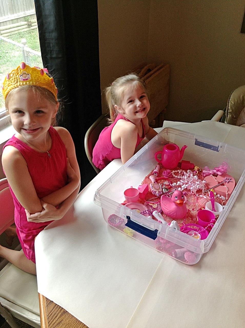 When they woke up they were super excited to jump right into pink princess sensory play!