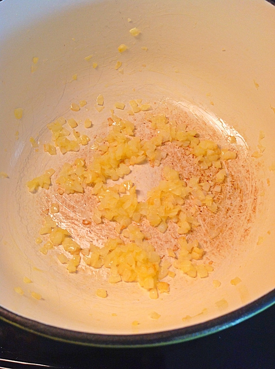 First I used a large stockpot and melted about a teaspoon or two of butter to cook my onions and get a nice caramelized color on them.
