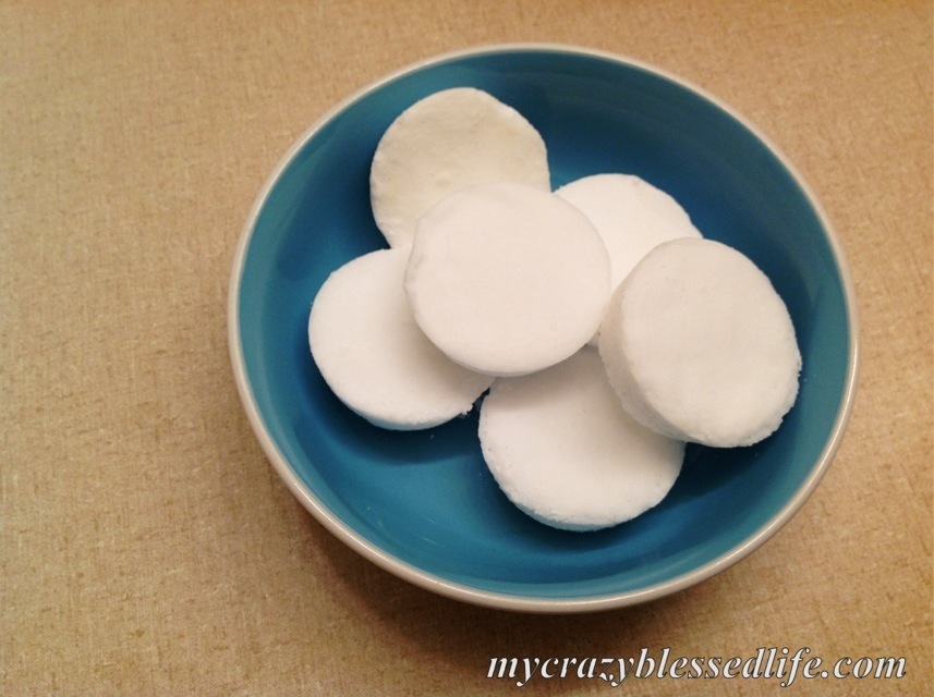 As my readers know from my previous post I have been battling a cold this week. I was asked for the recipe for my shower vapor discs. I used to buy the shower soothers made with Vick’s vapors in them and they helped my sinuses a lot. Well they are very expensive and so of course I went on the hunt for a cheaper and all natural DIY version. There are lots out there but the one that has worked for me is this: