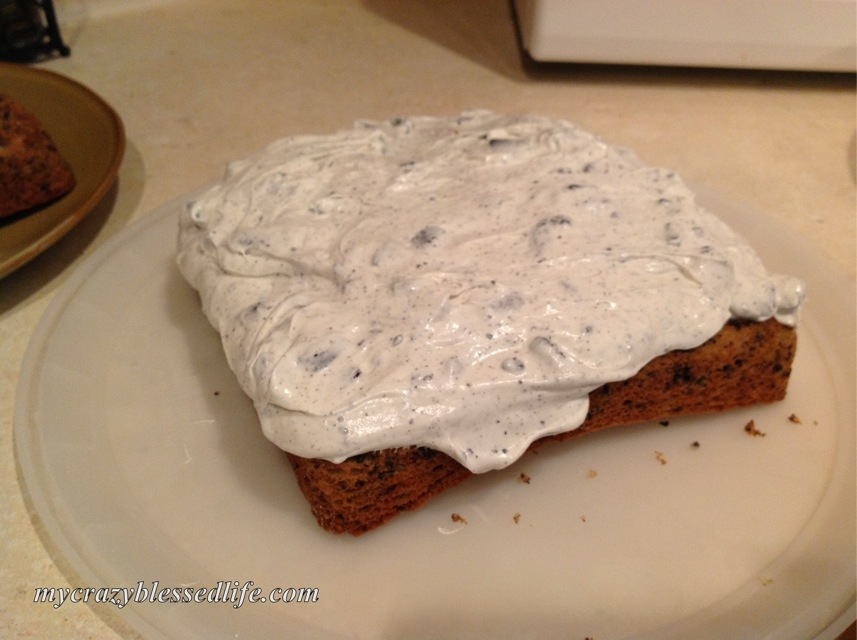 Then iced the whole thing with chunky, yummy Oreo icing!