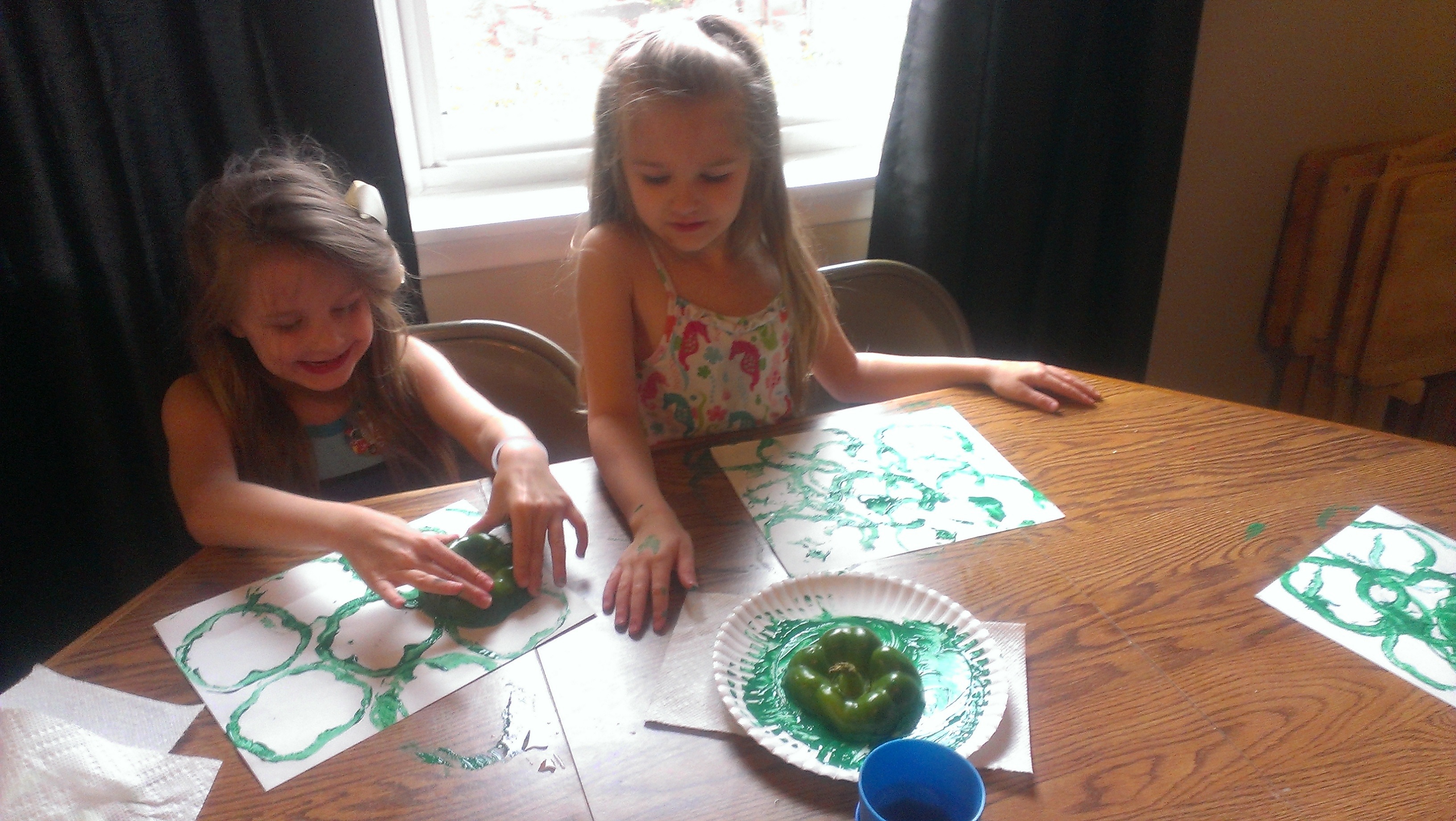 Last month I made shamrock prints with bell pepper tops on St. Patrick’s Day with the kids. I just cut off the tops and gave them to the kids with green paint and paper. It was a fun art project, and I saved the pepper bottoms just for this recipe. I made this last month (don’t worry I didn’t save them a month and then make this :)). This is just my first chance to sit and finish this post.