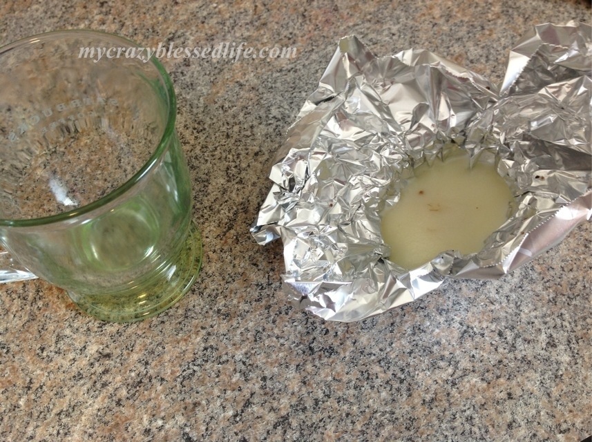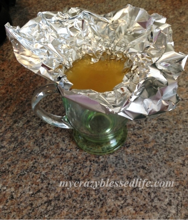 When browning the beef I have a quick tip to share about how to discard the grease. Before draining the grease, put tin foil down in your drain. Make it into a little cup to catch all the grease from going down the drain and stopping it up. Put a colander over the tin foil and pour in the browned meat. Carefully lift out the tin foil and put in a mug to cool.