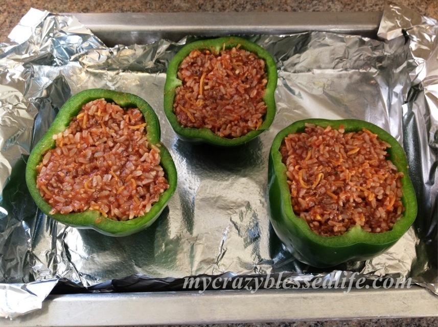 Today I’m sharing my stuffed peppers recipe. It is a simple and tasty recipe that will make your house smell amazing while they bake! My oldest daughter is not a fan of meat but if you spice it up she loves it. This is one of her (and my husband’s) favorite recipes.