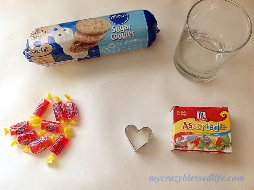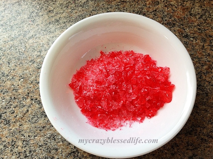 First we crushed our red hard candies. I unwrapped them and put them in a zipper bag and used a kitchen mallet to crush them.