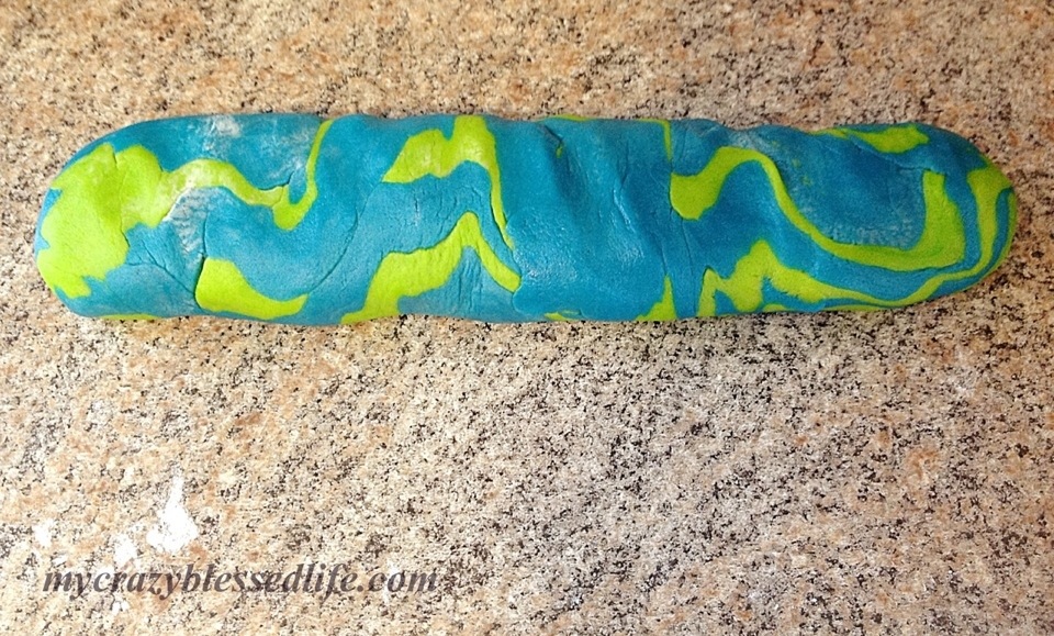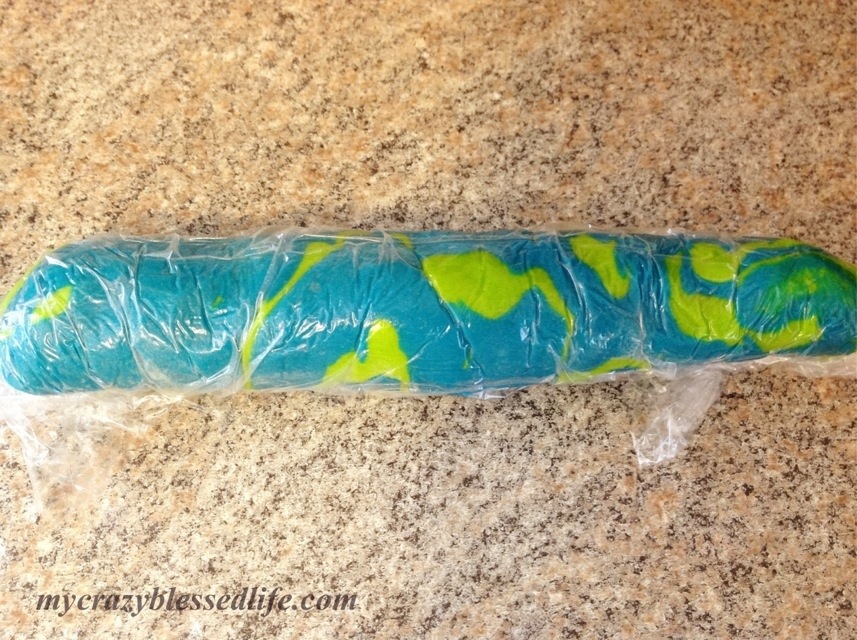 Then I colored 2/3 of the cookie dough with blue food coloring, and 1/3 with green food coloring.