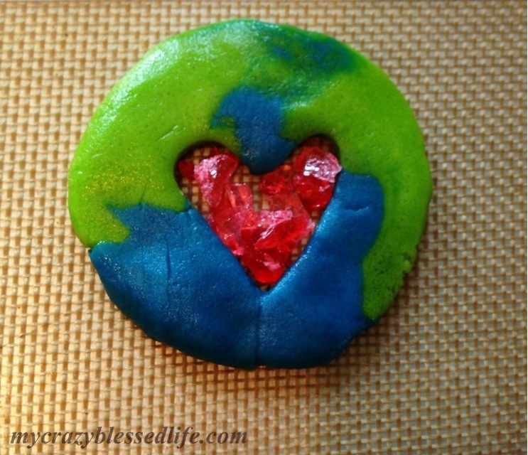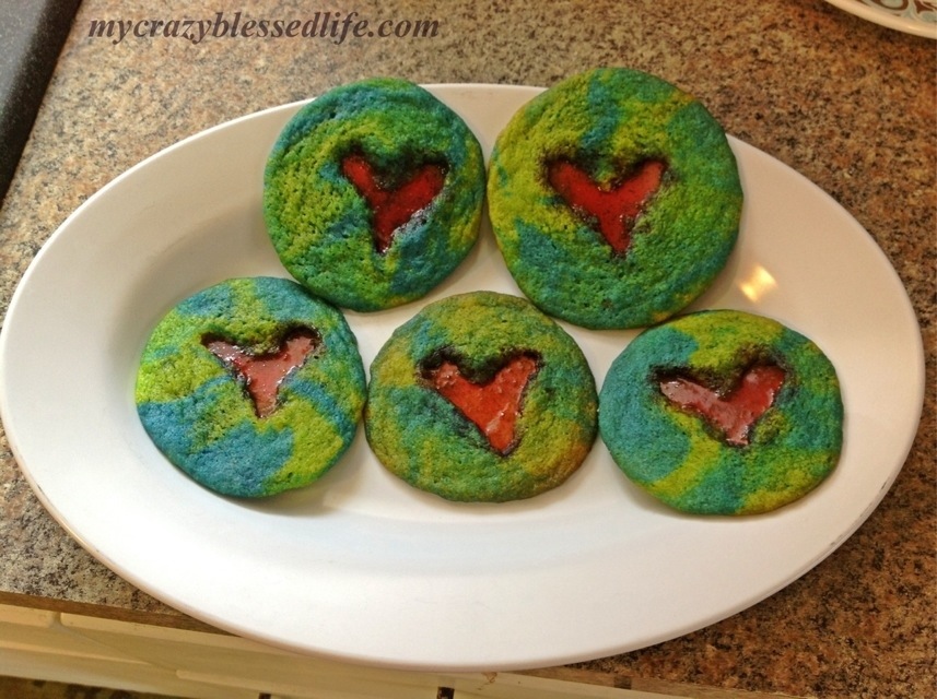 Happy Earth Day! I use this day to teach our children about taking care of the earth God entrusted to us in the beginning. We read the creation story, plant seeds, play outside, work in the yard, plant a tree and do fun crafts repurposing items. Today we made Earth Day cookies as well! I was inspired by some cupcakes I saw on Pinterest.