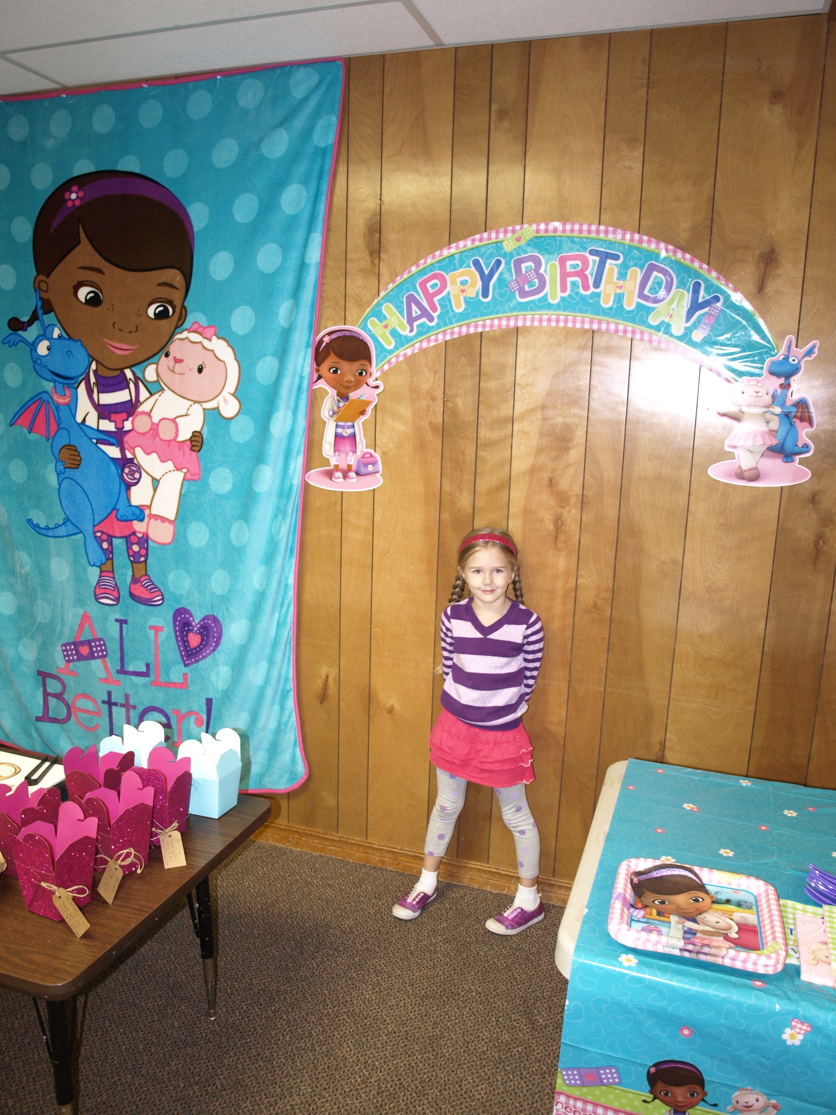 This year we were traveling all around my daughter Bella’s birthday in July. By the time we slowed down enough to have a real party it was almost her older sister’s birthday. So after talking to the girls, they were fine combining their parties into one. They were not budging on a combined theme though. So we threw a half My Little Pony and half Doc McStuffins party!