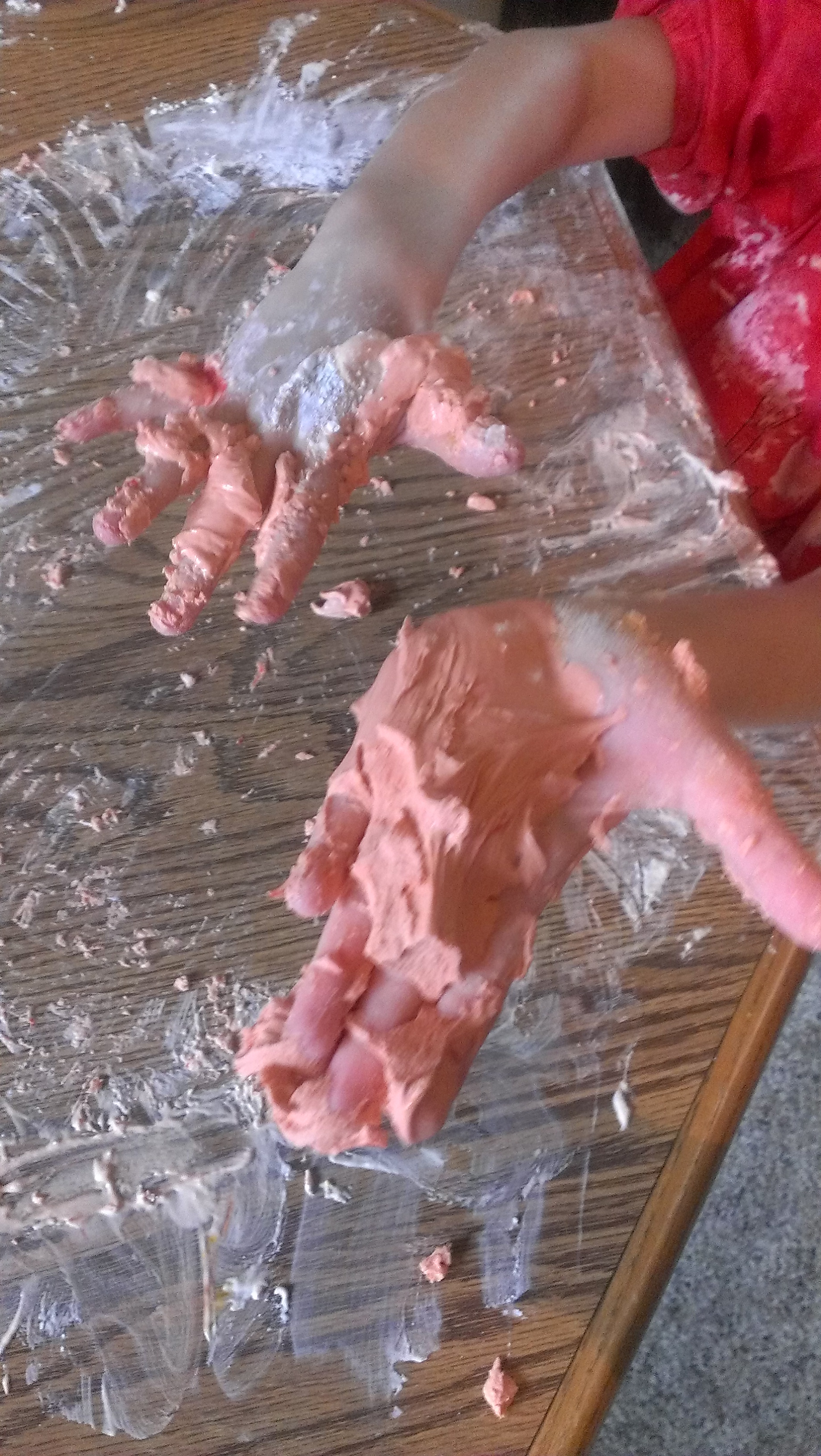 1. We used shaving cream for sculptures and finger painting. Beware it etched the Formica surface of my table surface. I highly recommend covering your table with plastic before you start