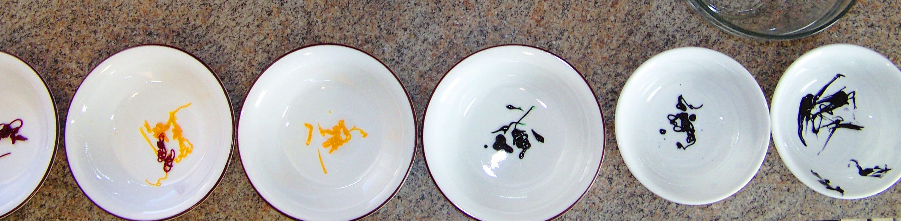 Pretty bowls lined up ready to make a rainbow of mini pancakes!