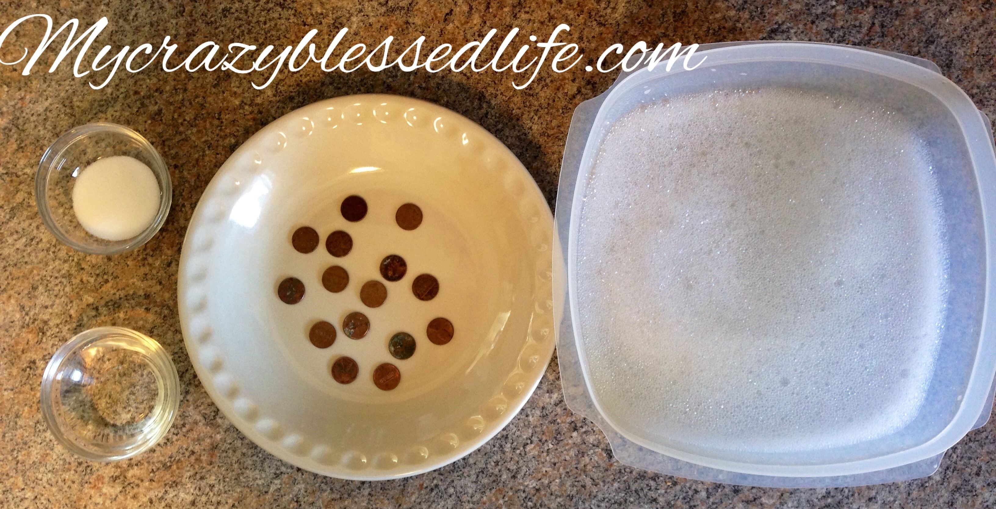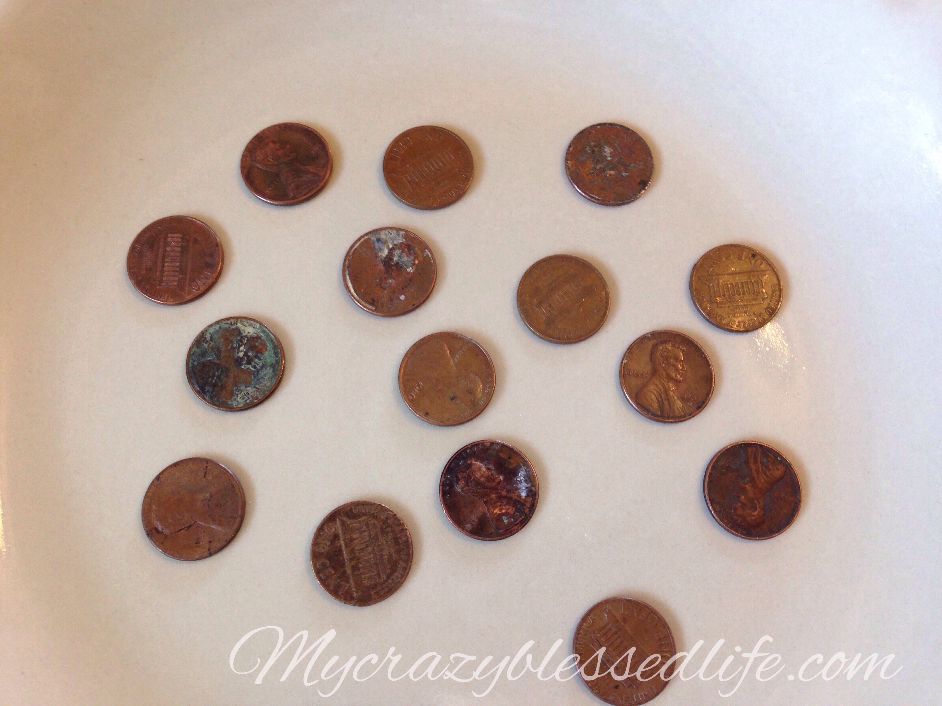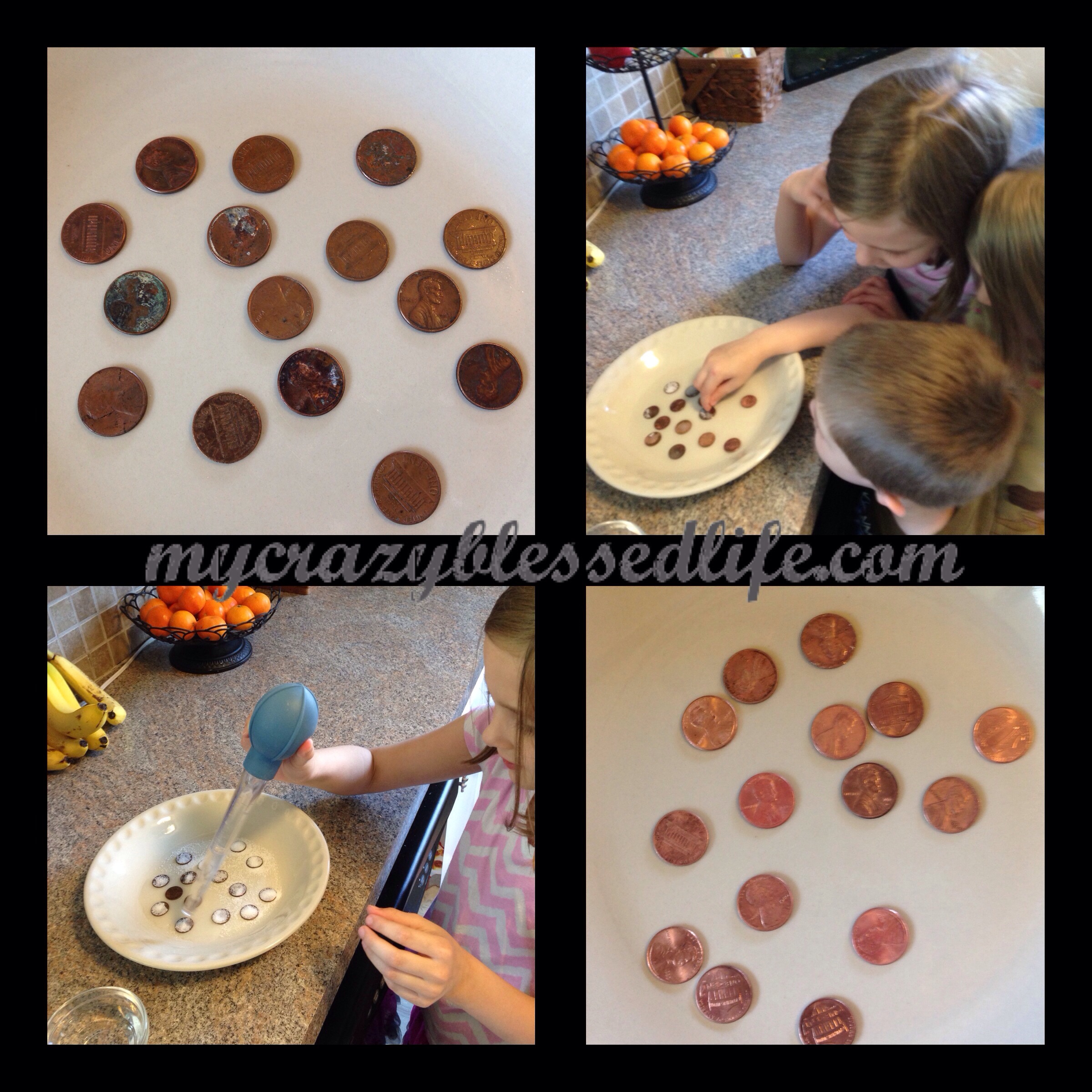 After sprinkling on the salt we dropped the pennies with vinegar.