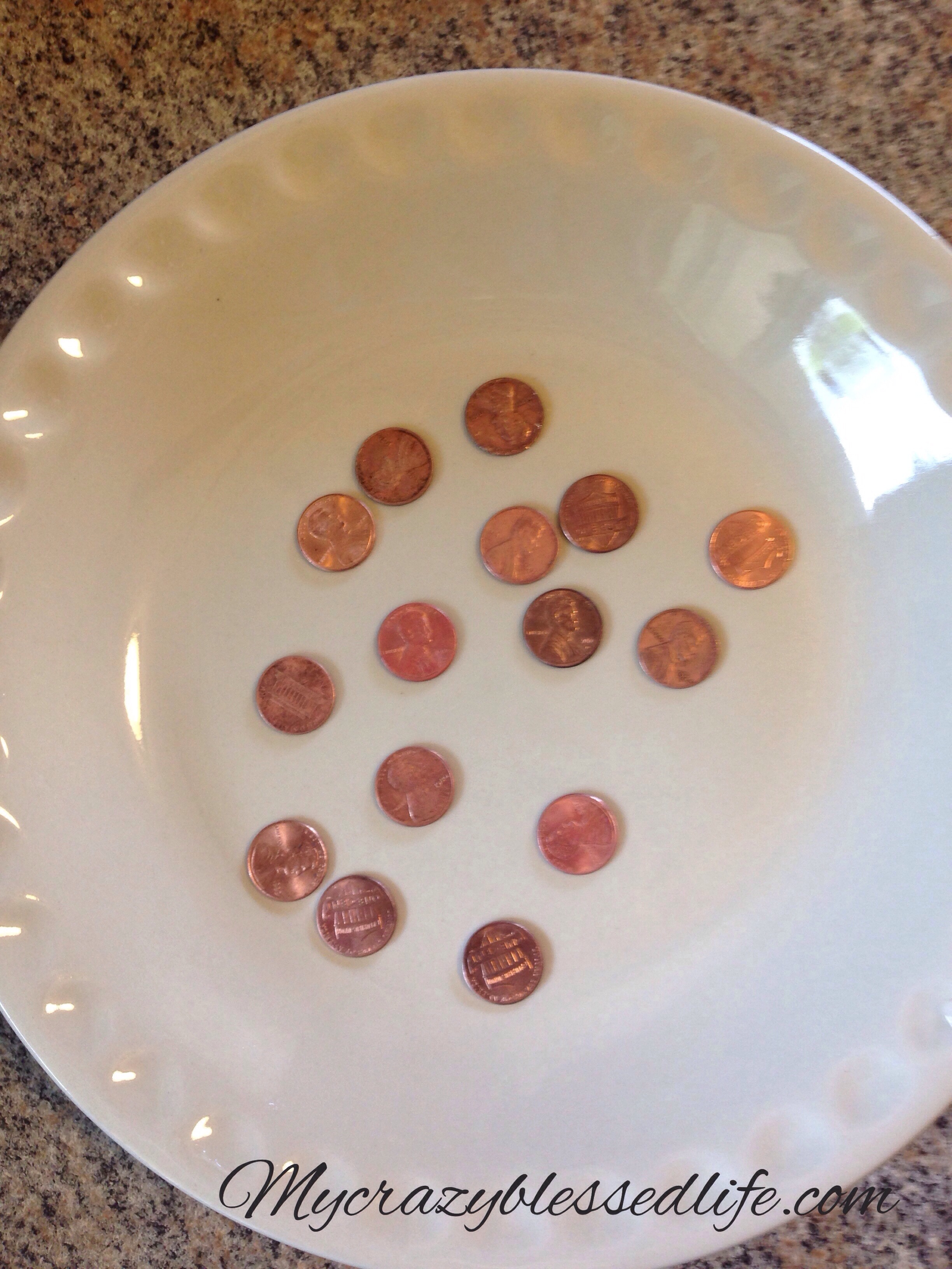 This morning our science experiment was so simple and fun I wanted to share! Cleaning pennies! Yeah, it doesn’t sound fun but my kiddos loved it, and it is harder than you think 😉