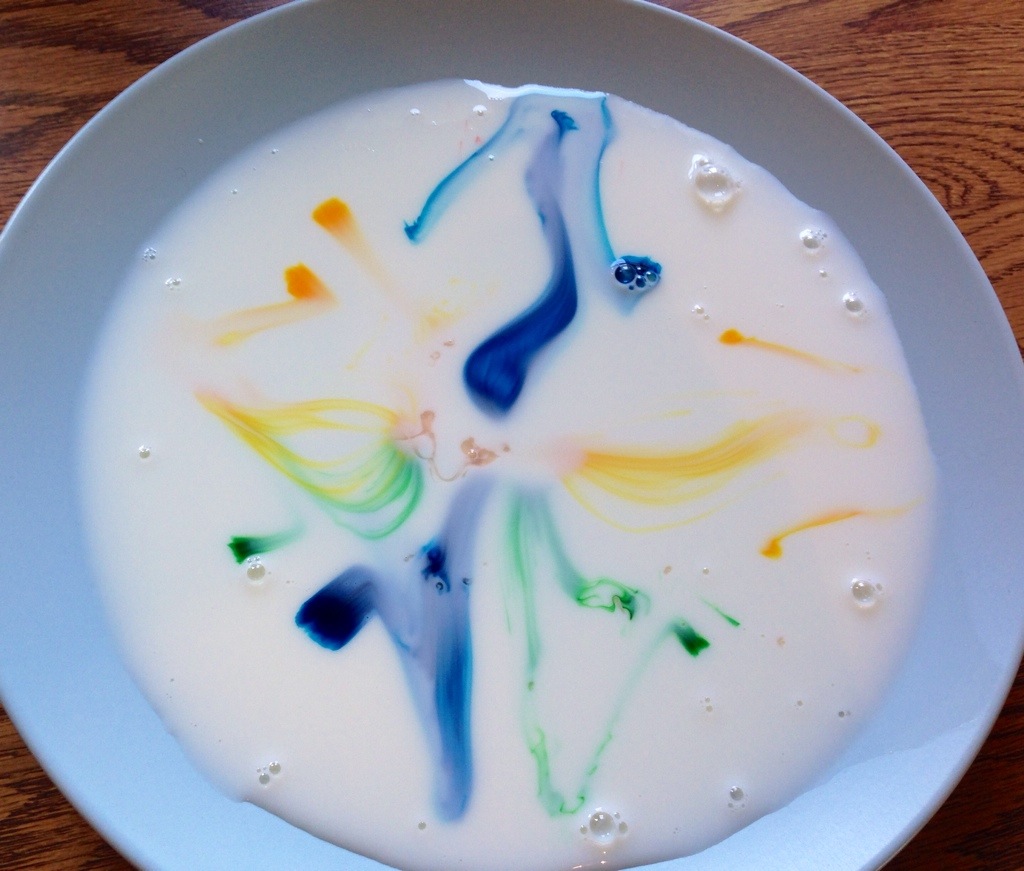Then drop one drop of soap in the center and watch the colors dance!