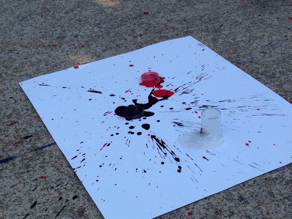 We popped an alka seltzer into the canister with the paint then quickly put the top on and flipped them upside down on a poster board. The pressure builds and they explode! The paint flies out and creates fun art 🙂