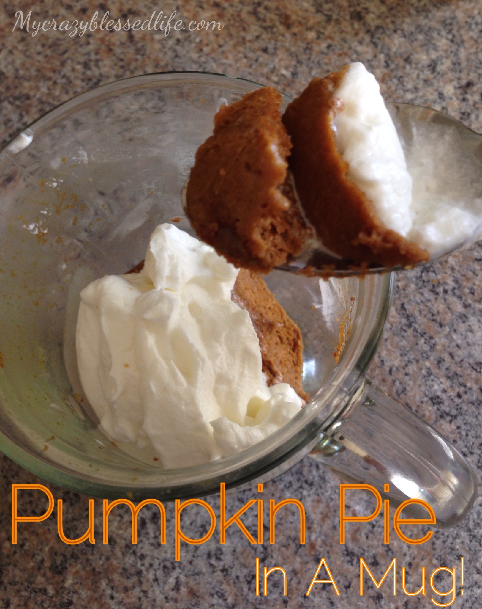 Football is back, mornings have a chill in the air, coffee houses have their pumpkin and spice drinks out, and I’m craving pumpkin 🙂 Yes I know fall doesn’t officially begin until September 22. That isn’t putting a damper on my excitement for the upcoming season though! Sometimes I want pumpkin dessert but don’t feel like putting the time into a full pie or pumpkin roll. That is why I created pumpkin pie in a mug! Simple, fast and oh does it hit the spot when I’m craving a pumpkin spicy dessert 🙂