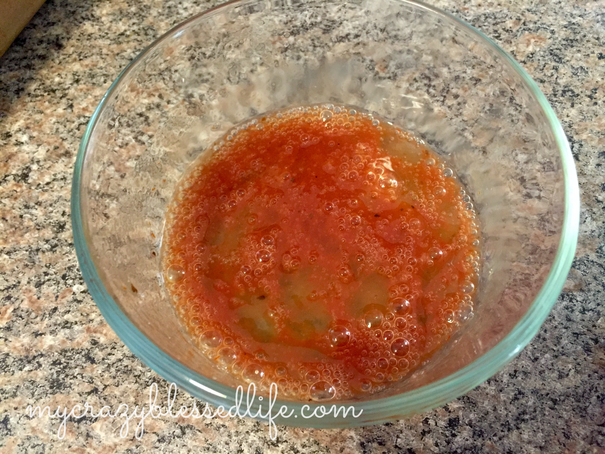 Next to give it that bloody intestines look I made and egg white wash with 1 egg white and some of the pizza sauce I had leftover.