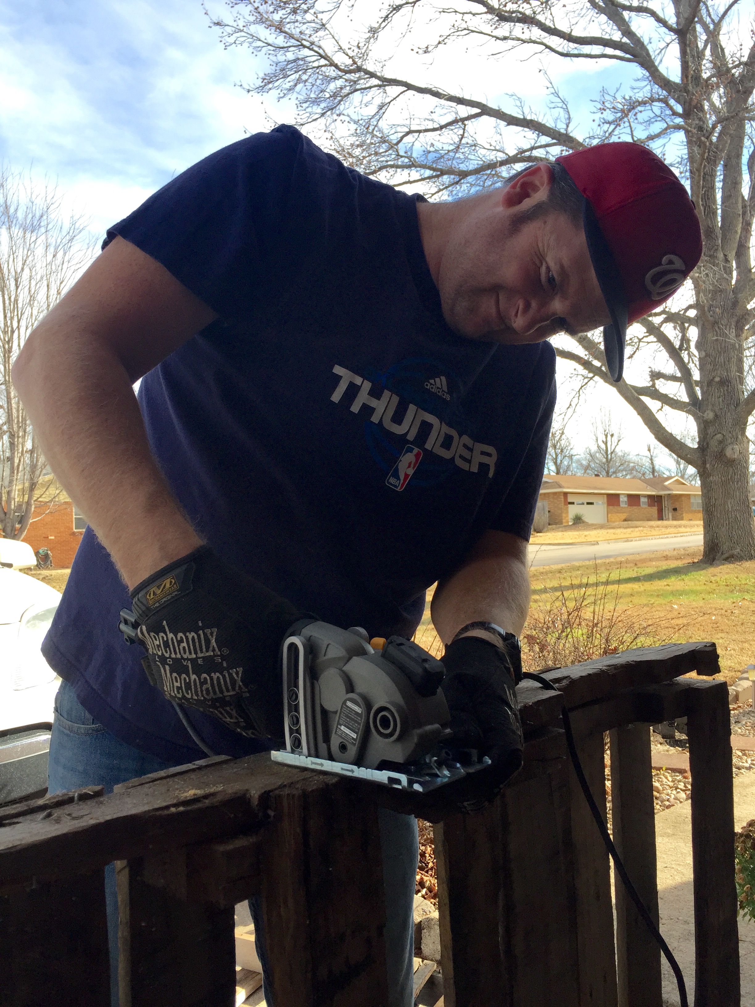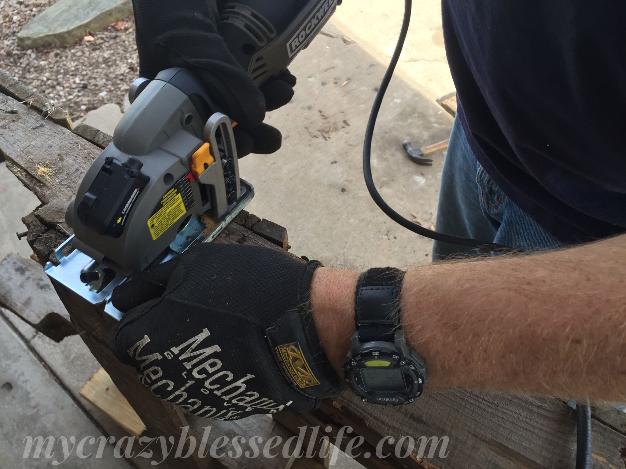 If you give my man a saw… he will build me an awesome rustic hanging wall basket from old pallets we have in the backyard! I’m extremely blessed to be married to a wonderfully talented handy man. Eric can build just about anything I’ve asked, for example I got a gorgeous farmhouse table built from old barn wood for our 11 year anniversary. Other great pieces in our house are Eric originals also, but I won’t bore you anymore with my swooning over my guy! Recently we were contacted by Rockwell Tools to give one of their tools a try for a blog post. My husband gladly volunteered to debut his first guest post on my blog without hesitation. So without further ado I will let my favorite man take it from here!