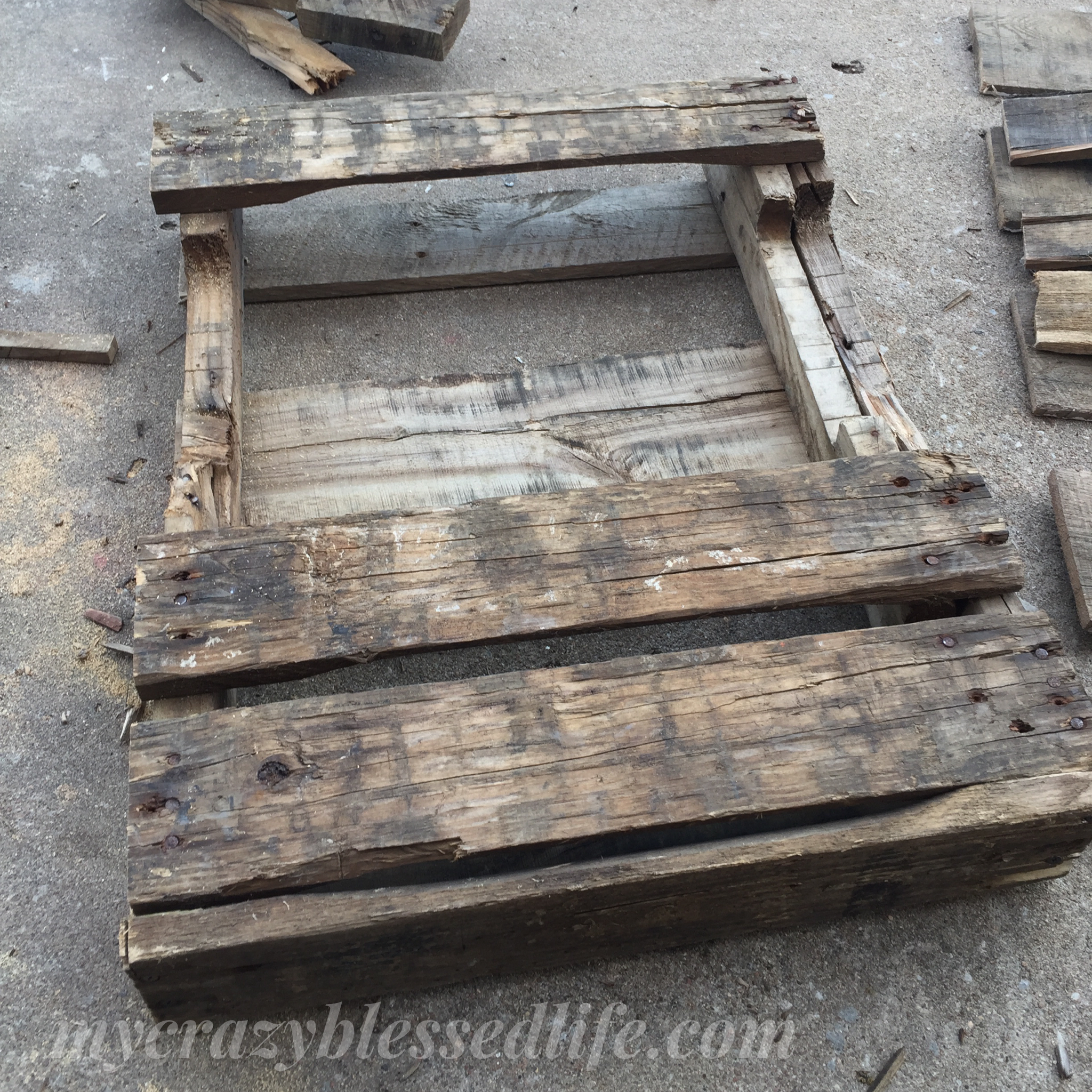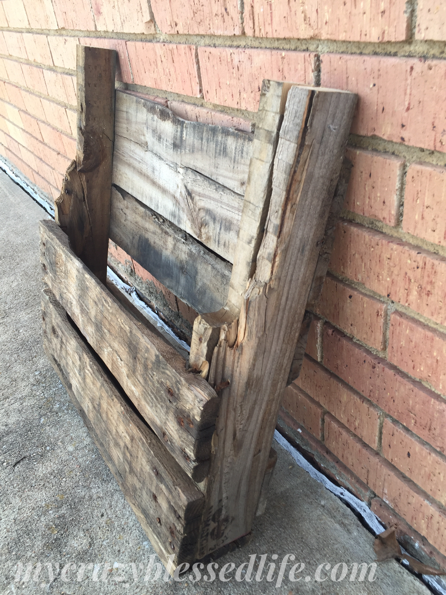 DIY Pallet projects are all the rave right now. I have hunted down many of these gems at the lumberyard. But, I have also discovered that more often than not they can be ragged and worn from the abuse of their purpose. So me, being thrifty, I grab the broken pallets to scavenge pieces from as needed in addition to the nicer pallets.