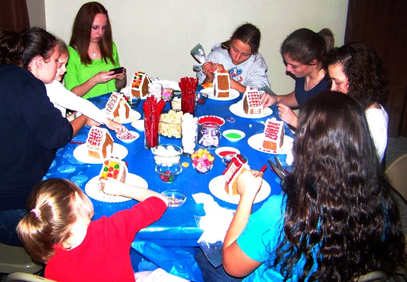 So here was my night in pics 🙂 I had a gingerbread house decorating party for my teen girls small group. We had a blast and A LOT of sugar! Oh and I let my two girls join in, they begged and I’m a sucker for their sweet faces… enjoy